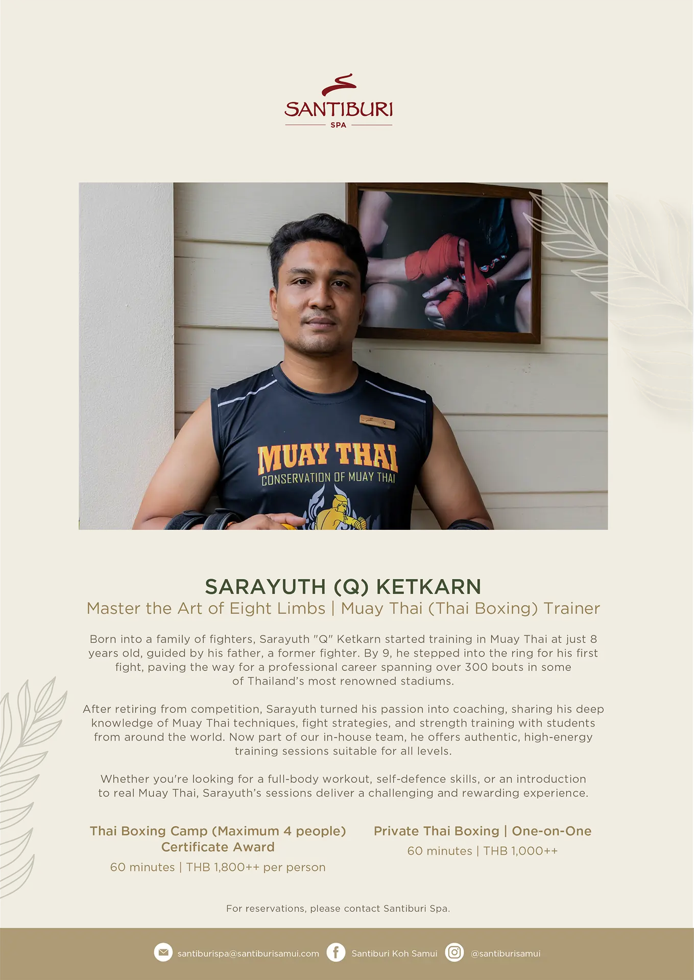Born into a family of fighters, Sarayuth "Q" Ketkarn started training in Muay Thai at just 8 years old, guided by his father, a former fighter.